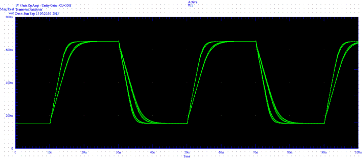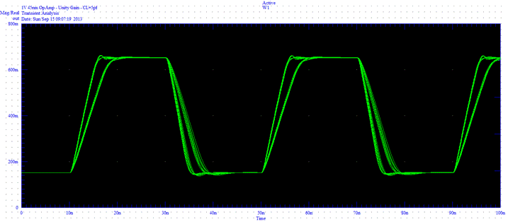 Worst Case Corners 0 dB Gain Transient CL=500ff