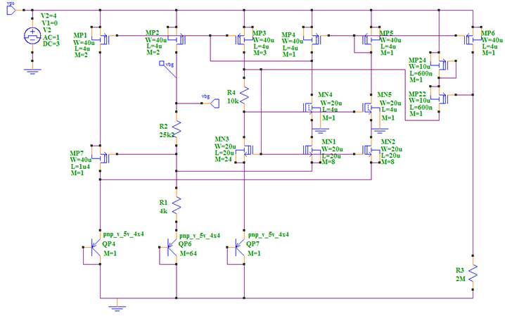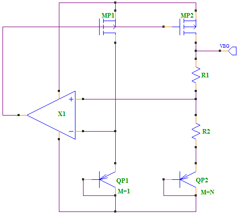 The standard pnp diode ptat bandgap topology is shown in Fig.1