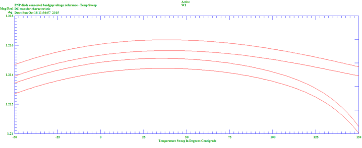 The worst case corners shows that the temperature set point is independent of global Vt variations, only the magic voltage changes.