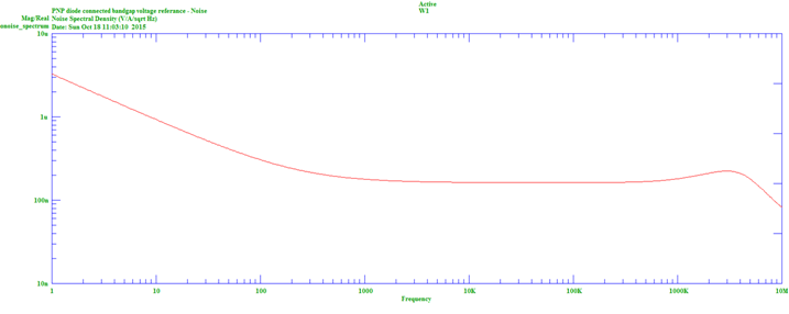 Ref 1 shows, for example, a reduction of 9 uv/sqrthz to 1uv/sqrthz at 10 Hz when its chopper is engaged, with an area of 0.12 mm2. However, the example in this paper also shows 1 uv/sqrthz at 10 Hz with an area of only around 0.02 mm2 ! Ok, its not quite apples with apples, the example here is just a basic un-buffered reference, but the point is that the 1/f noise is essentially due to the noise of the input Mosfets. Using “large” Mosfets reduces both the error and the noise. For this example, 3 sigma input offset will be of the order of < 1 mV, or around 6 mV maximum correction required to the magic voltage.