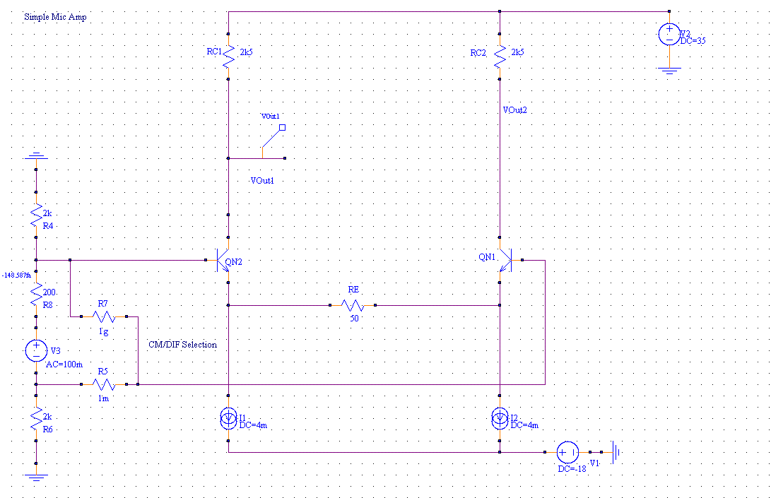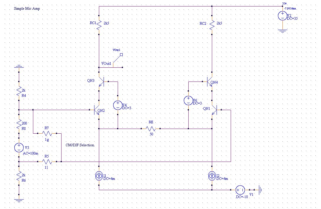 The SuperSpice example for this is StandardMicAmp.sss